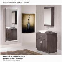 Toujours avec le souci de respecter les contraintes et les besoins du client, des devantures de bains et un grand choix de vanités sont offerts dans un éventail de couleurs et de matériaux permettant ainsi d'agencer les décors existants ou à renouveler. |